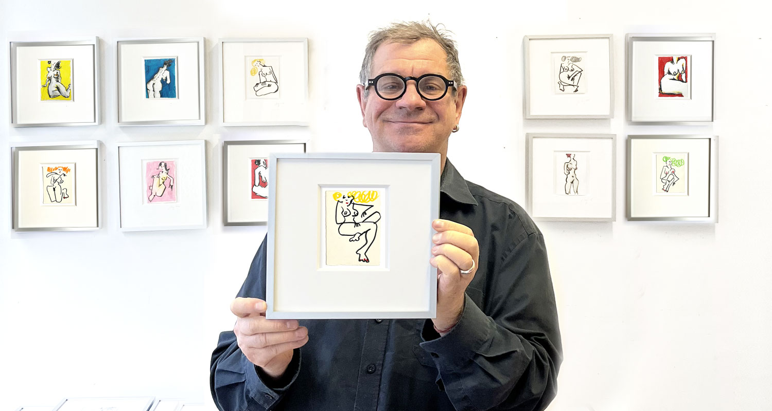 Zeichnung, Comic, Karikatur- die Grenzen verschwimmen und das Thema „Akt“ erfährt eine komplette Neudeutung durch die ungewöhnliche Ausführung und das kleine Format. Auch hier begeistert die Treffsicherheit, mit der Jörg Herz Bewegungen mit einen scheinbar hingeworfenen Strich einzufangen vermag.