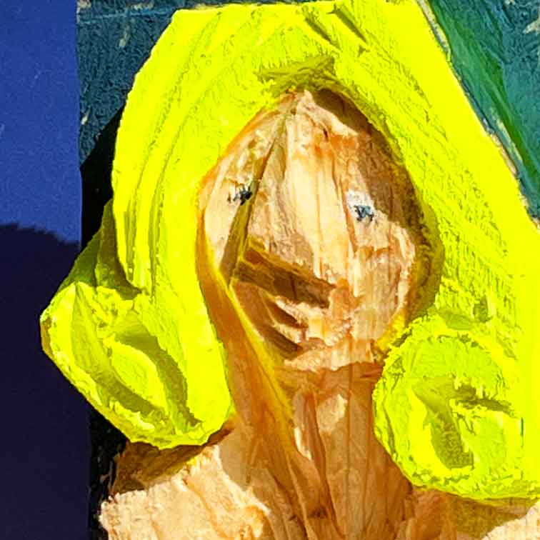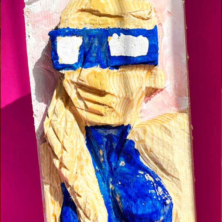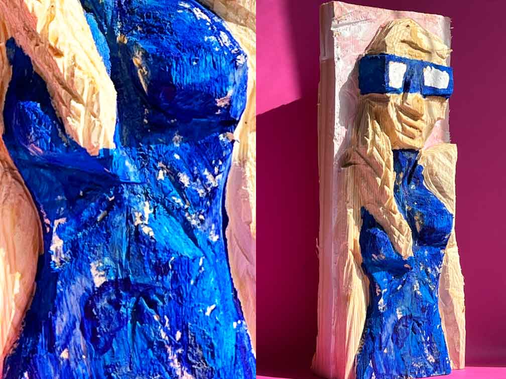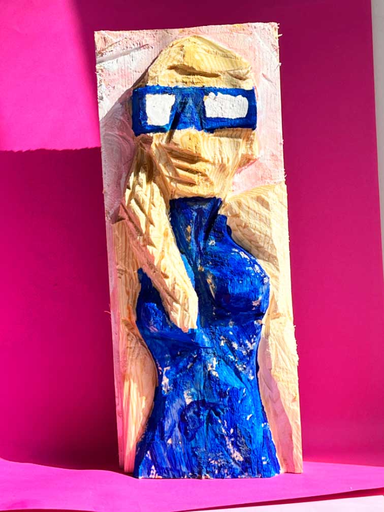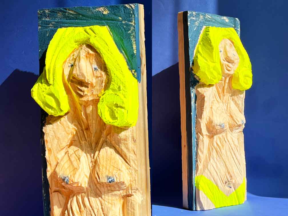 Die Entstehung von meinen Werken darf man spüren. Details sind Nebensache. Meine menschlichen Reliefs sind wie meine Skulpturen sinnlich und direkt. Aus rohen Fichtenstämmen lass ich Figuren entstehen, bei denen jede Arbeitsspur sichtbar bleibt und das Relief lebendig wirken lässt.